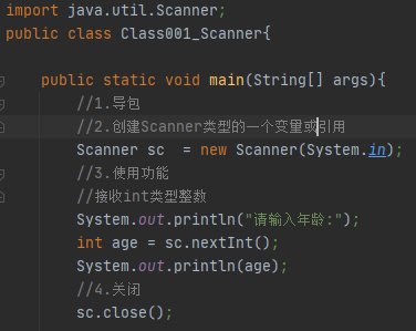 关闭:sc.close();使用当前类中完全使用完毕之后进行关闭,以便于回收资源