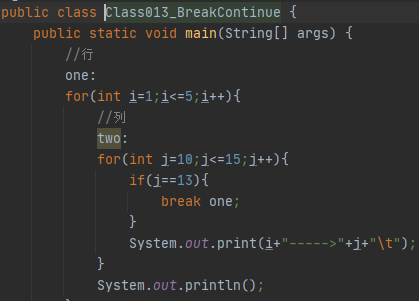 使用break|continue的时候,指定针对哪一层循环进行操作 break 标签名;