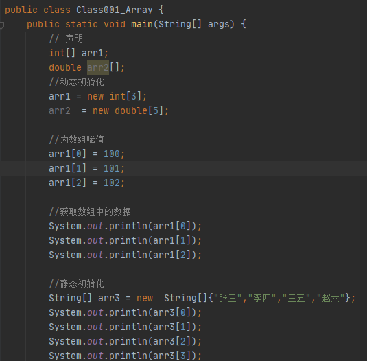 (3)初始化:①动态初始化 : 先创建数组然后赋值