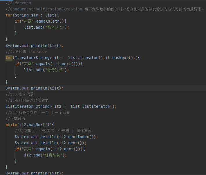 ⑤遍历方式:a.普通for;b.增强for;c.iterator迭代器;d.listIterator迭代器
