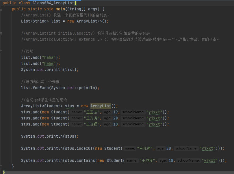 ⑥定义ArrayList,存储自定义的javabean类型学生类型数据,简单操作
