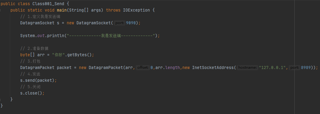 ③基于三次握手,UDP协议下发送端与接收端两端平等DatagramSocket 此类表示用于发送和接收数据报包的套接字。