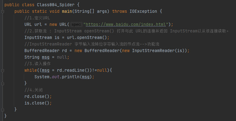 ③获取输入流-->接收客户端的请求数据