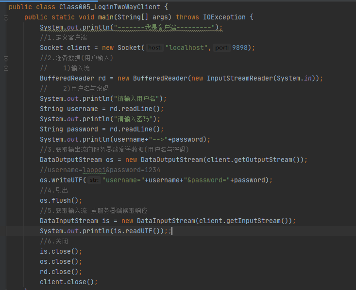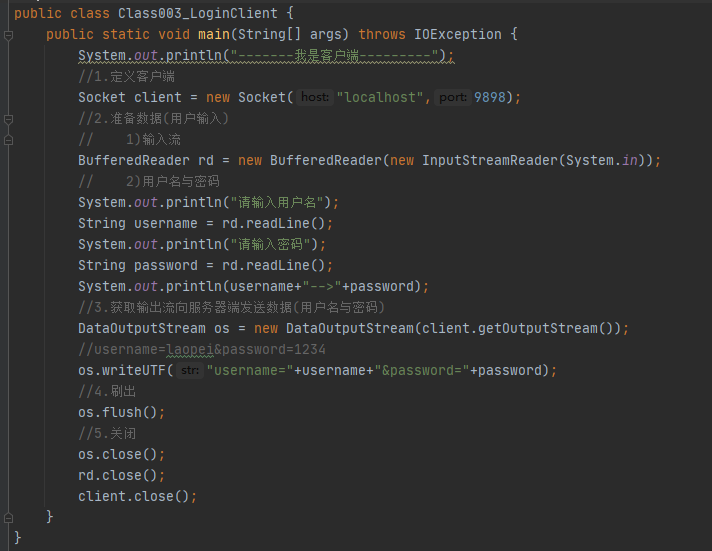 ③获取输出流向服务器端发送数据(用户名与密码)