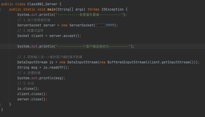 ③获取输入流接收客户端发动的数据