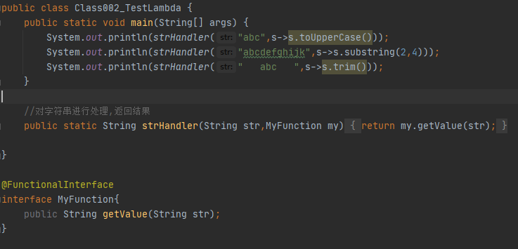 ①声明函数式接口,接口中声明抽象方法,public String getValue(String str)