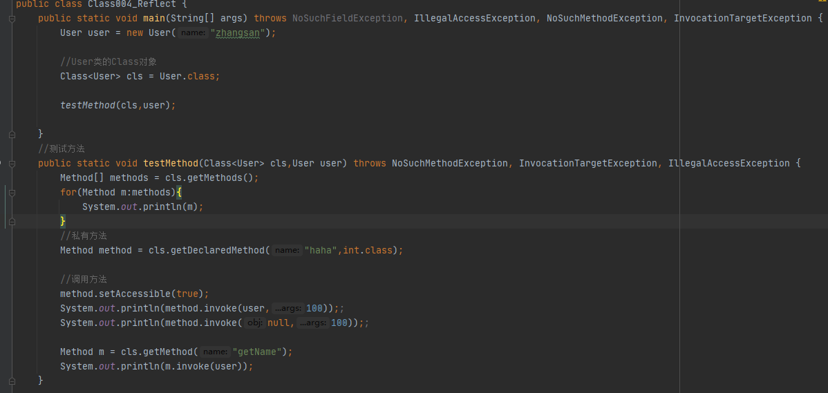 c.方法 getDeclaredMethod(String name, 类<?>... parameterTypes) 返回 方法对象,该对象反映此 类对象表示的类或接口的指定声明方法。