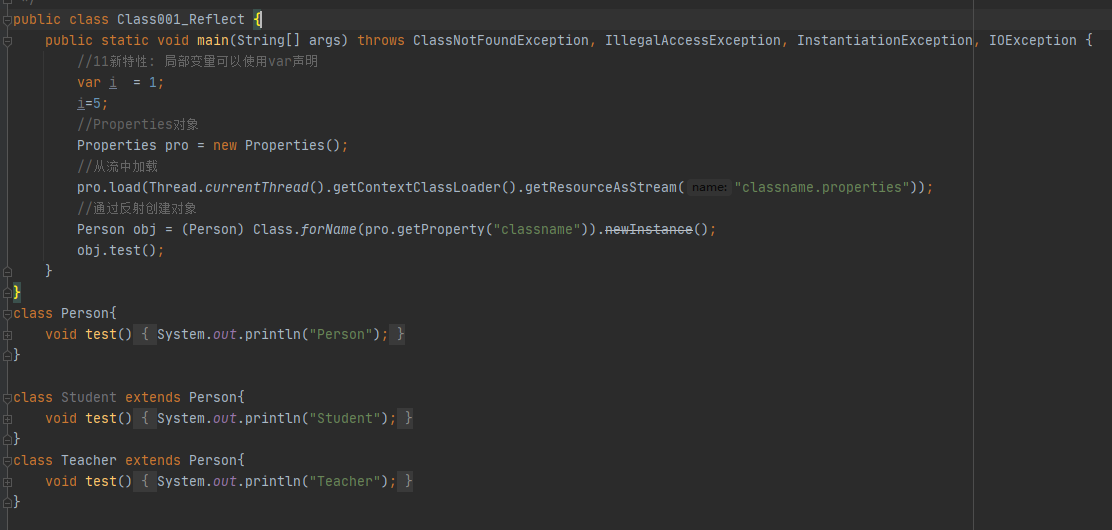 a.Class-->T newInstance() 默认调用类型的空构造为对象初始化信息 -->不推荐使用