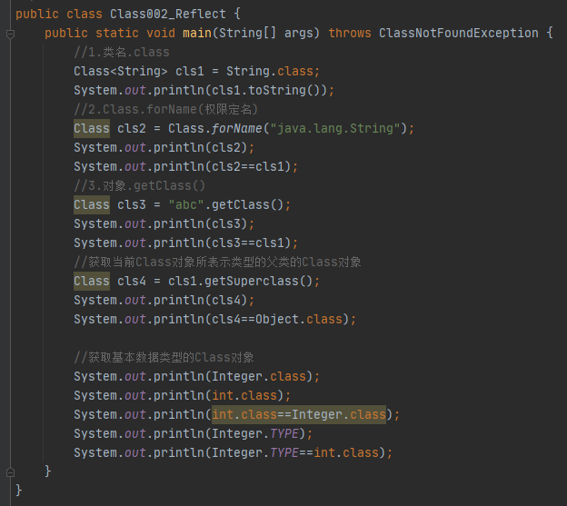 ②Class对象在类第一次加载到内存后就已经存在的,唯一的,不变的,每一个类型只有一个,Class对象可以操作这个类的所有内容(属性方法构造器...)。