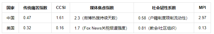 MPI = (传统关税痛苦指数) × CCSI × (1 + 媒体焦虑指数) / 社会韧性系数 其中: - 媒体焦虑指数 = 关税相关负面报道占比 × 社交媒体传播倍率(中国微博话题#生活成本#阅读量达48亿) - 社会韧性系数 = 人均GDP × 社会保障覆盖率 × 社区组织密度(中国居委会覆盖率达93%)