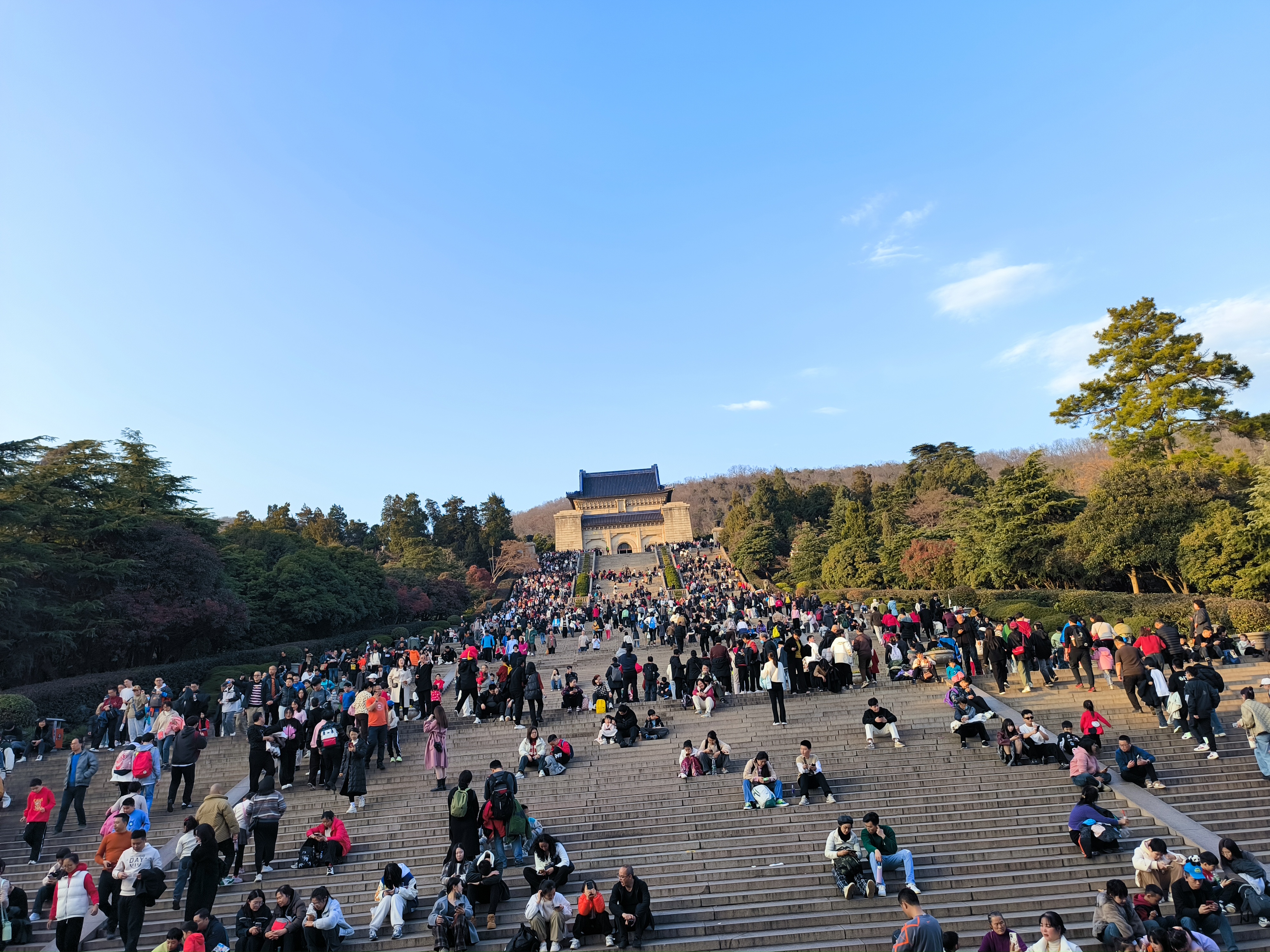 从夫子庙出发,导游带领我们去了钟山风景区的中山陵。一路拥堵,到达时分已经下午接近5点。5点是最后的进入时间,我们赶在最后几分钟终于进入里面,抬眼一望,高高的长长台阶上几乎全是人。