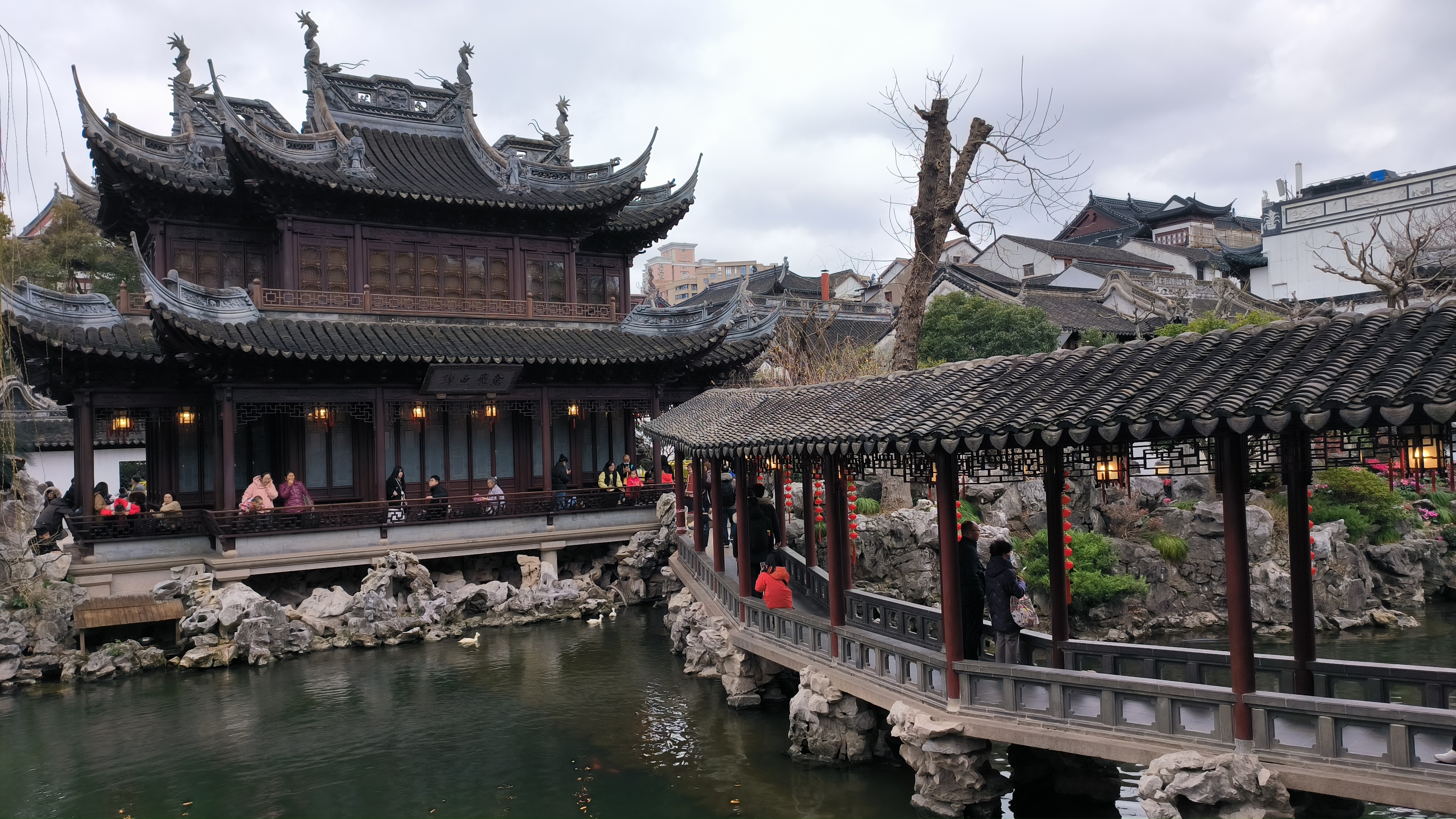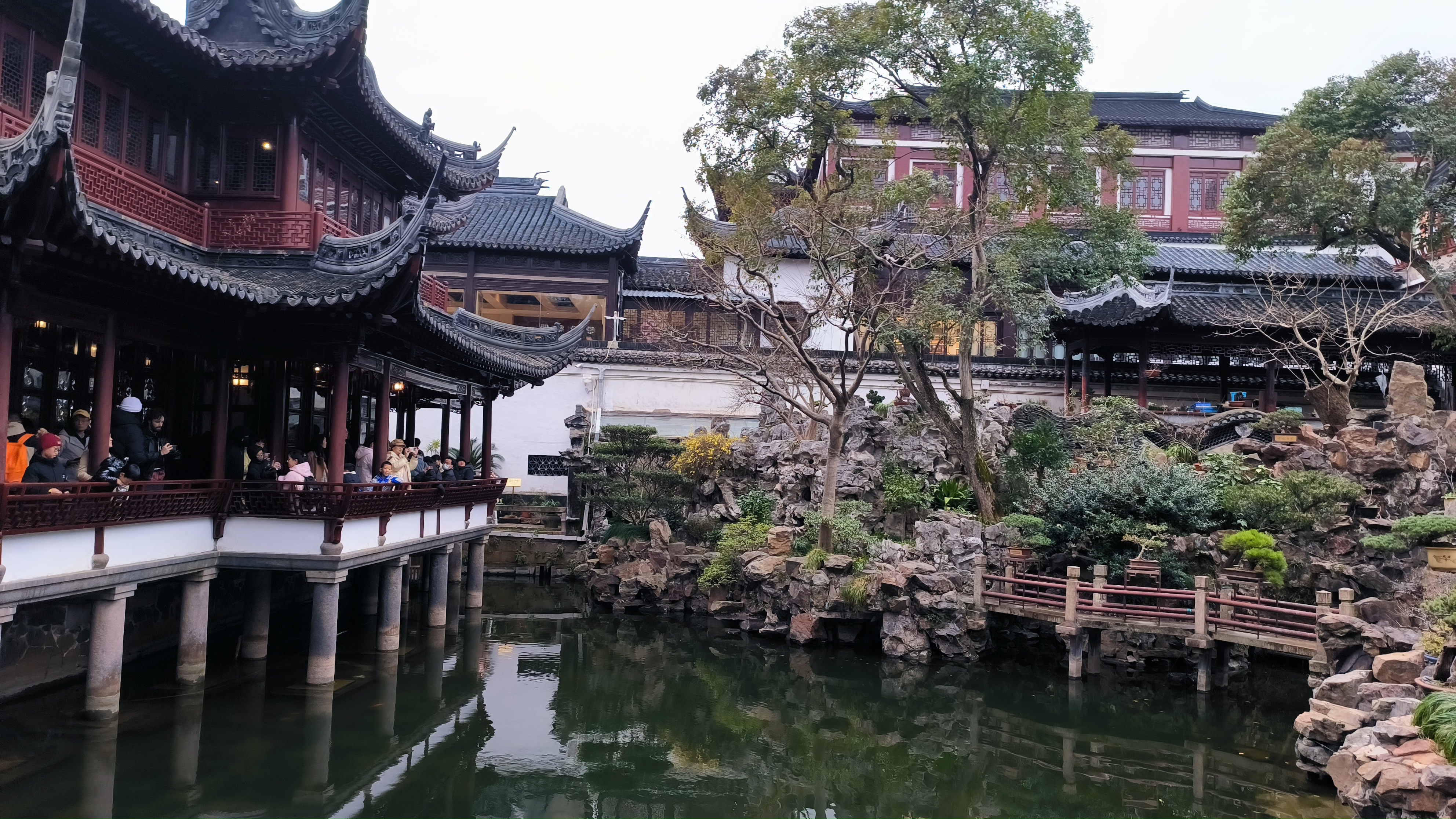 豫园地方不大,但里面小巧玲珑,设计精美。代表了江南园林艺术的巅峰。处处是景,横看成岭侧成峰,远近高低各不同。虽然只有半个小时,但我和老爸也基本逛完了,甚为满意。