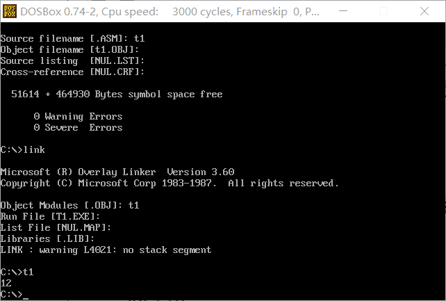 第一段的db中只含有一个数字12,其只占即ds:[0]的位置,将商保存后面字节的位置