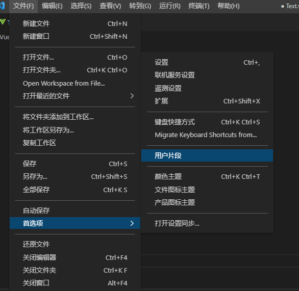 让vscode创建vue文件时,自动生成基础模板,利用用户片段选项实现: