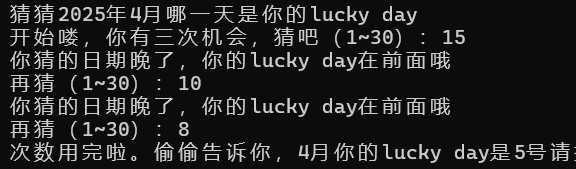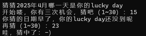 printf("猜猜2025年4月哪一天是你的lucky day\n");