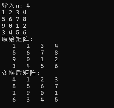 printf("变换后矩阵:\n");