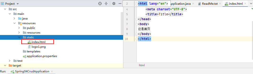 三. 在下列路径下创建index.html,可以作为默认首页,当访问http://localhost:8080/时会显示这个首页
