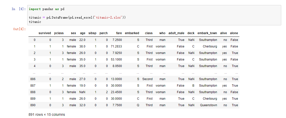 import pandas as pd titanic = pd.DataFrame(pd.read_excel('titanic-2.xlsx')) titanic