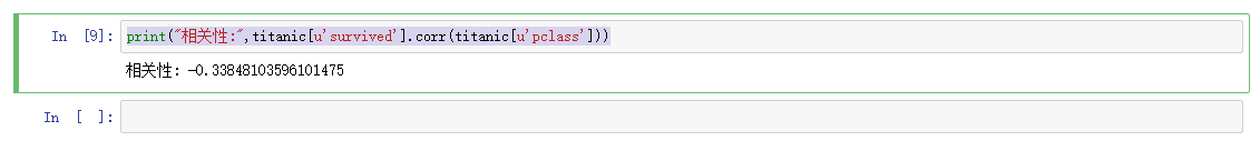 print("相关性:",titanic[u'survived'].corr(titanic[u'pclass']))