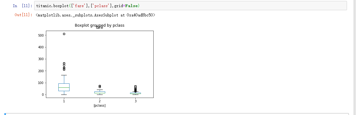 6.画出乘客票价与舱位等级的箱体图Boxplot,从图中能够得到哪些结论?
