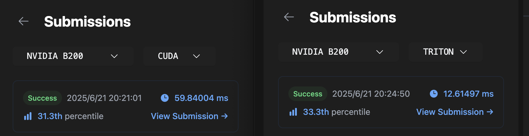 Triton能很轻松得写出性能不错的kernel,在矩阵乘的kernel上你能很轻松得用上tma,对比native的CUDA kernel,可以在B200上获得近5倍的加速。matmul.cu vs matmul-with-tma.py