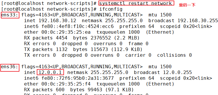 4.配置负载调度器(内网关 ens33:192.168.30.12,外网关 ens37:12.0.0.1)