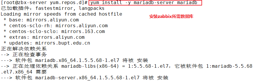 zabbix-server 内存至少 2G,推荐 4G; systemctl disable --now firewalld setenforce 0 hostnamectl set-hostname zbx-server //获取 zabbix 的下载源 rpm -ivh https://mirrors.aliyun.com/zabbix/zabbix/5.0/rhel/7/x86_64/zabbix-release-5.0-1.el7.noarch.rpm //更换 zabbix.repo 为阿里源 cd /etc/yum.repos.d sed -i 's#http://repo.zabbix.com#https://mirrors.aliyun.com/zabbix#' zabbix.repo yum clean all && yum makecache yum install -y zabbix-server-mysql zabbix-agent //安装SCL(Software Collections),便于后续安装高版本的 php,默认 yum 安装的 php 版本为 5.4,版本过低,zabbix 5.0 版本对php