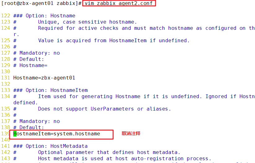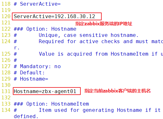 Hostname=zbx-agent01 #131行,指定当前 zabbix 客户端的主机名