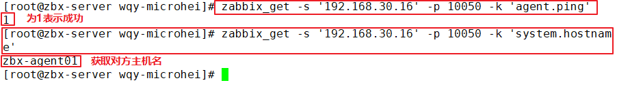 zabbix_get -s '192.168.30.16' -p 10050 -k 'system.hostname'