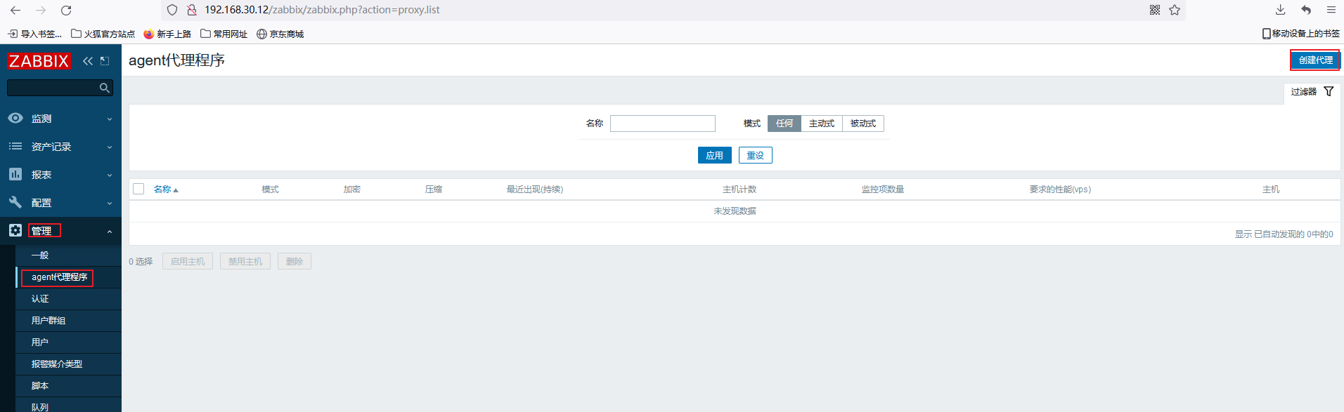 分布式监控的作用: ●分担 server 的集中式压力 ●解决多机房之间的网络延时问题 agent --> proxy --> server systemctl disable --now firewalld setenforce 0 hostnamectl set-hostname zbx-proxy //设置 zabbix 的下载源,按照 zabbix-proxy rpm -ivh https://mirrors.aliyun.com/zabbix/zabbix/5.0/rhel/7/x86_64/zabbix-release-5.0-1.el7.noarch.rpm cd /etc/yum.repos.d sed -i 's#http://repo.zabbix.com#https://mirrors.aliyun.com/zabbix#' /etc/yum.repos.d/zabbix.repo yum install -y zabbix-proxy-mysql zabbix-get //安装 zabbix 所需的数据库 yum install -y mariadb-server mariadb systemctl enable --now mariadb mysql_secure_installation #初始化数据库,并设置密码,如 zxc123 //添加数据库用户,以及 zabbix 所需的数据库信息 mysql -u root -pzxc123 CREATE DATABASE zabbix_proxy character set utf8 collate utf8_bin; GRANT all ON zabbix_proxy.* TO 'zabbix'@'%' IDENTIFIED BY 'zabbix'; flush privileges; //导入数据库信息 rpm -ql zabbix-proxy-mysql #查询 sql 文件的位置 zcat /usr/share/doc/zabbix-proxy-mysql-5.0.15/schema.sql.gz | mysql -uroot -pzxc123 zabbix_proxy //修改 zabbix-proxy 配置文件 vim /etc/zabbix/zabbix_proxy.conf Server=192.168.30.12 #30行,指定 zabbix 服务端的 IP 地址 Hostname=zbx-proxy #49行,指定当前 zabbix 代理服务器的主机名 DBPassword=zabbix #196行,指定当前数据库 zabbix 用户的密码 //启动 zabbix-proxy systemctl start zabbix-proxy systemctl enable zabbix-proxy //在所有主机上配置 hosts 解析 vim /etc/hosts 192.168.30.12 zbx-server 192.168.30.16 zbx-agent01 192.168.30.17 zbx-proxy //在 Web 页面配置 agent 代理 点击左边菜单栏【配置】中的【动作】,勾选自动注册规则,点击 禁用 点击左边菜单栏【配置】中的【主机】,勾选原有的客户端主机,点击 删除 点击左边菜单栏【管理】中的【agent代理程序】,点击【创建代理】 【agent代理程序名称】设置为 zbx-proxy 【系统代理程序模式】选择 主动式 【代理地址】设置为 192.168.30.17 点击 【添加】