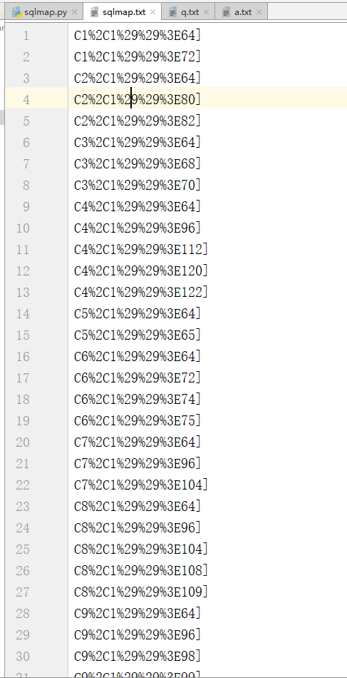 先这样过滤出求数据第一个字符的 %2C1%2C1%29%29%3E 即,1,1))>