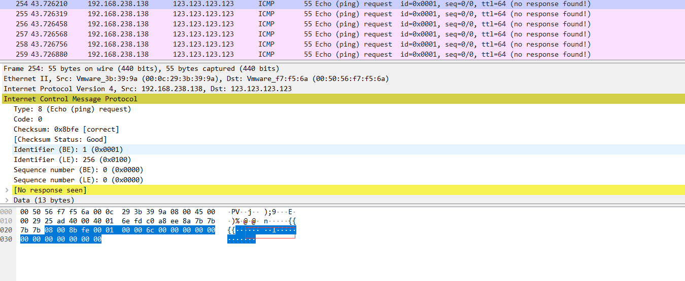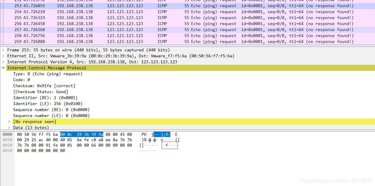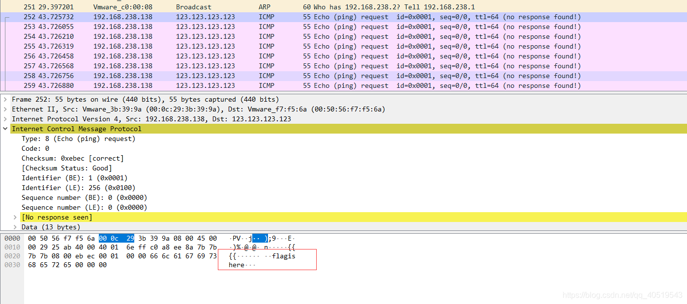 打开后翻看一下,看到有ping,还很长,打开第一个就提示了