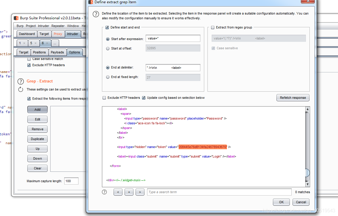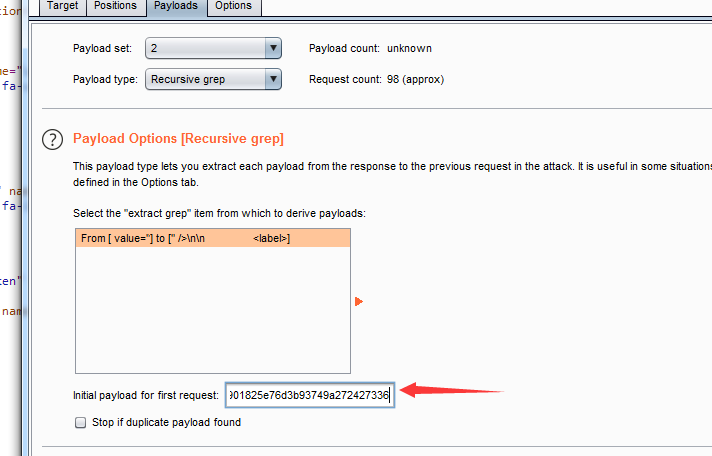 payload set为2 时设置type为recursive grep,并在下图位置粘贴token值