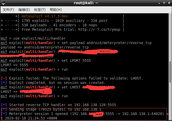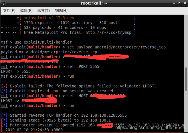 kali入侵安卓手机的方法和其他的博主方法一样,只是开头对手机的ip进行设置
