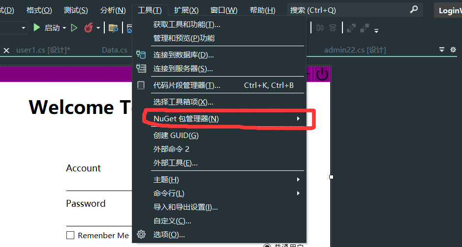 1. 打开工具,选择Nuget包管理器,后续选择控制台下载。