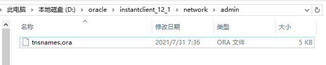 在oracle环境创建一个子目录D:\oracle\instantclient_12_1\network\admin,创建tnsnames.ora监听文件即可。