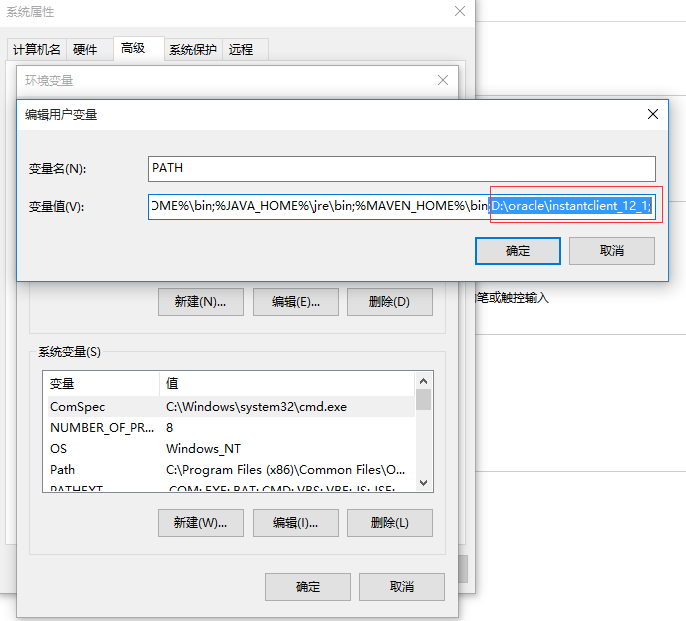 在环境变量Path中配置D:\oracle\instantclient_12_1;