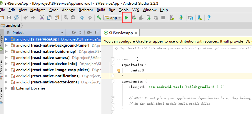 React Native 目前需要Android Studio2.0 或更高版本。我安装的是2.2.3。