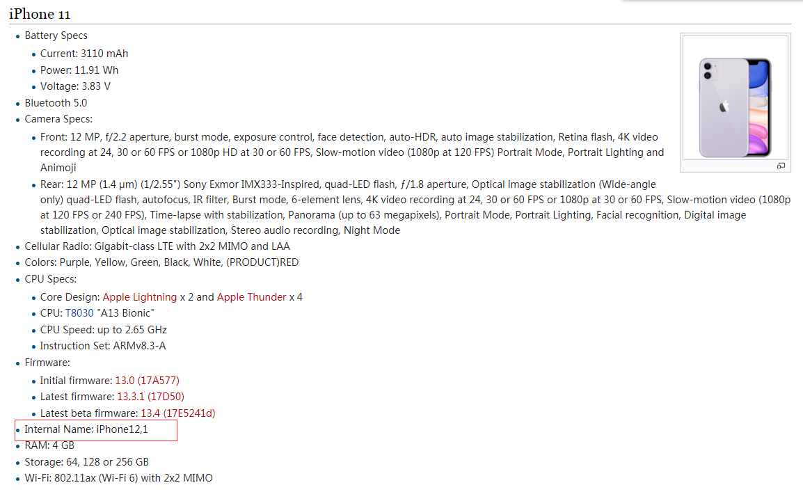 程序里获取到的设变编号是iPhone的内部编号,需要做相应的转化,下面有2个地址可以取到各代iPhone iPad 内部代号: