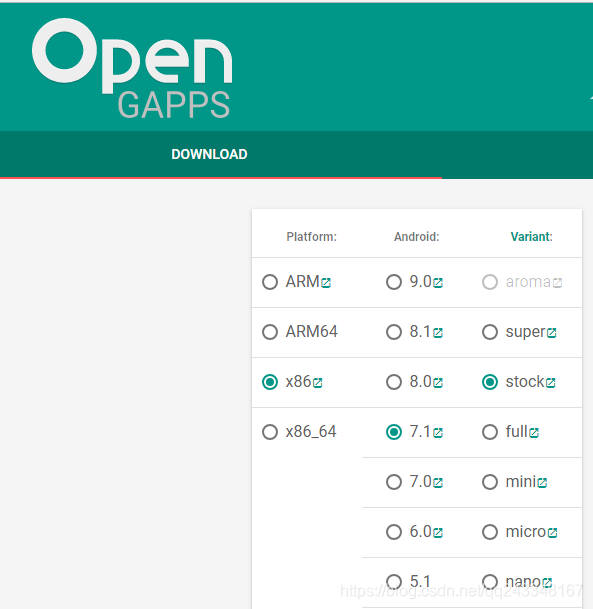 4.如果要集成googleplay可以去https://opengapps.org/下载对应版本的包,然后拖到模拟器重启即可。