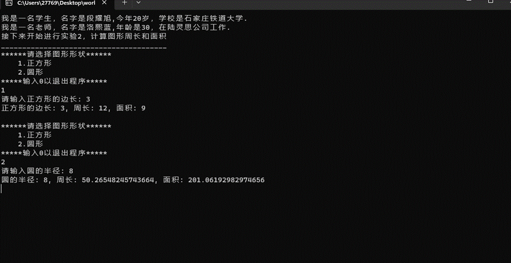 2. 编写一个控制台应用程序,输入正方形边长或者半径,计算其周长和面积并输出。