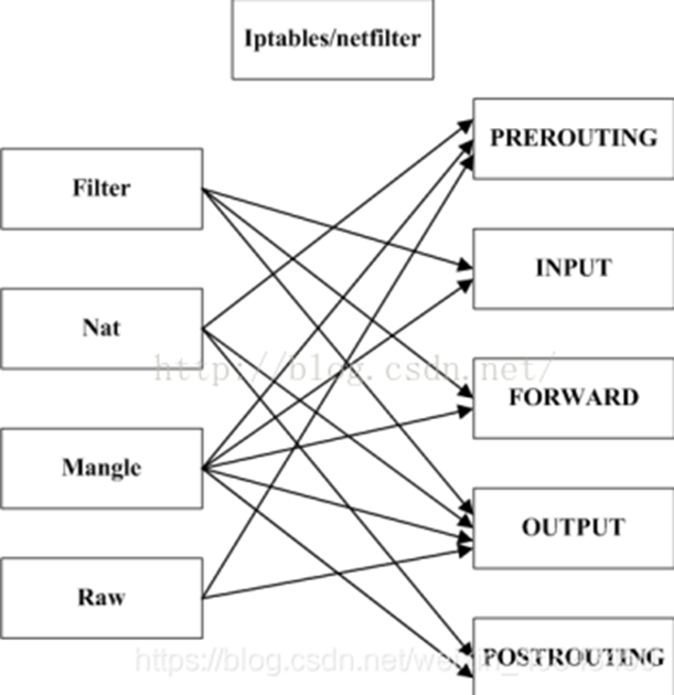 netfilter在内核空间运行, 它是一组保存着一系列规则的表,内核利用这些规则进行网络分组过滤。