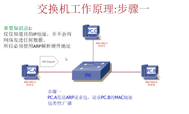 3.1 PC.A 发送ARP请求,请求PC.B的MAC地址