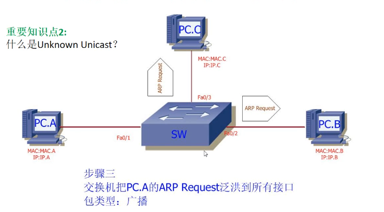 题外话: Unknown Unicast,二层单播帧,目的MAC地址在交换机中不存在,因此泛洪