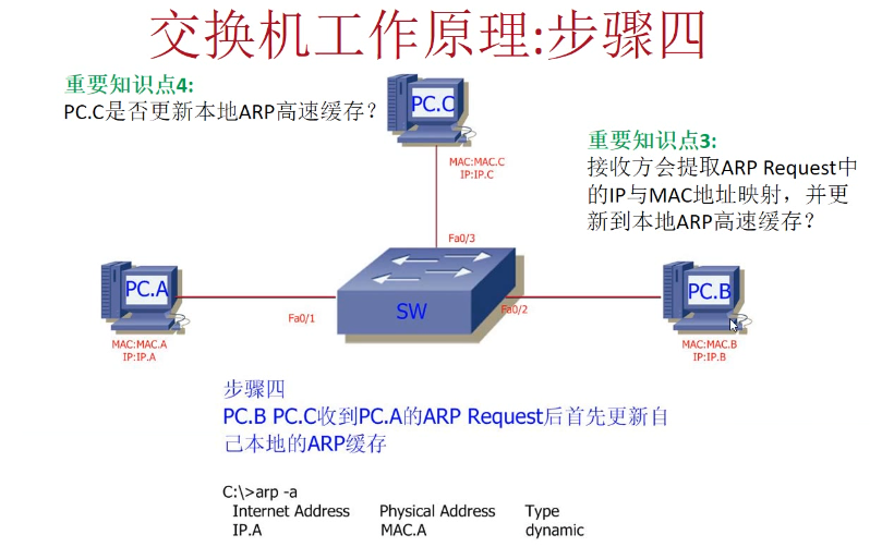 3.4 PC.B\PC.C收到PC.A的ARP Request后,首先更新自己的ARP缓存