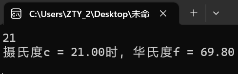 #define _CRT_SECURE_NO_WARNINGS #include <stdio.h> #include <stdlib.h> int main() { double f; double c; while (scanf("%lf", &c) != EOF) { f = 9.0 / 5.0 * c + 32.0; printf("摄氏度c = %.2lf时, 华氏度f = %.2lf\n", c, f); printf("\n"); } system("pause"); return 0; }