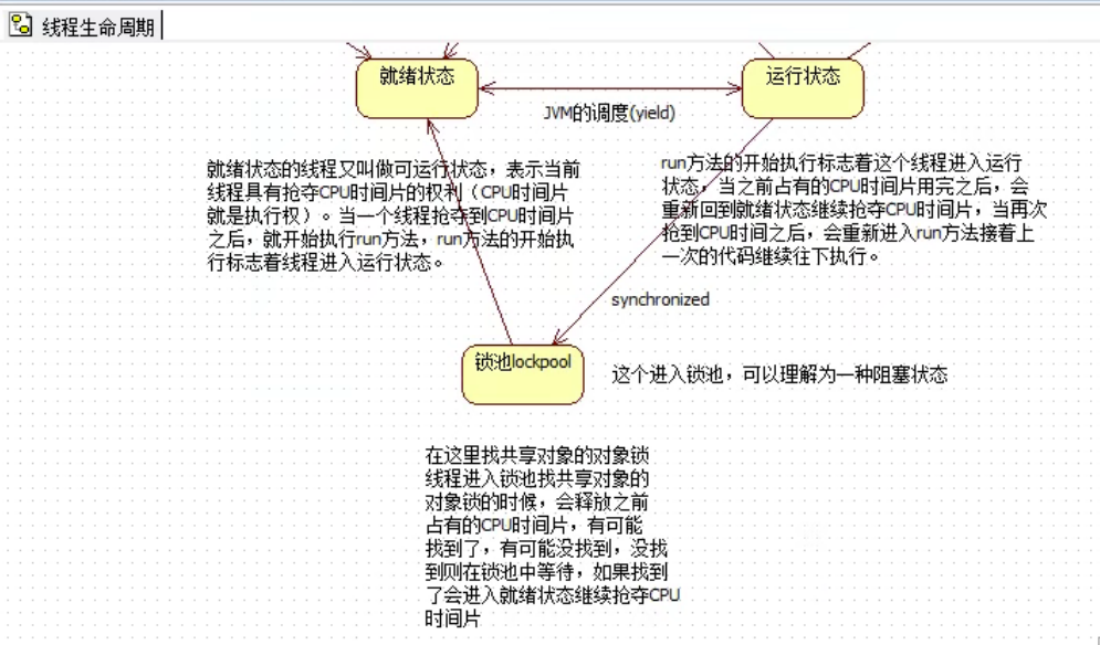 2)同步编程模型:当一个线程正在执行时,其他线程必须等此线程执行完毕才能执行,线程排队执行(效率较低);