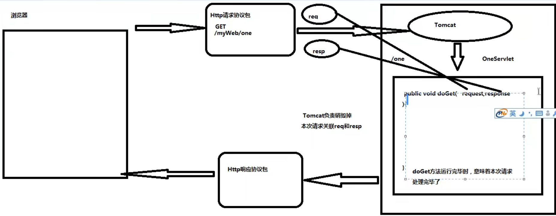 1.在Http服务器接收到浏览器发送的【Http请求协议包】之后,自动为当前的【Http请求协议包】生成一个【请求对象】和一个【响应对象】。