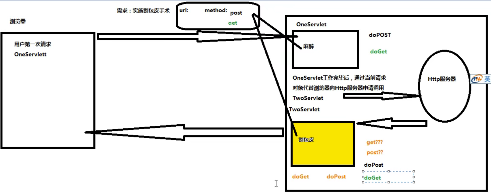 某些来自于浏览器发送的请求,往往需要服务端中多个Servlet协同处理。但是浏览器一次请求只能访问一个Servlet,导致用户需要手动通过浏览器发起多次请求才能得到完整的服务,这样增加用户获得服务难度,导致用户一生气,不用咱们的网站了,oh,no!!!