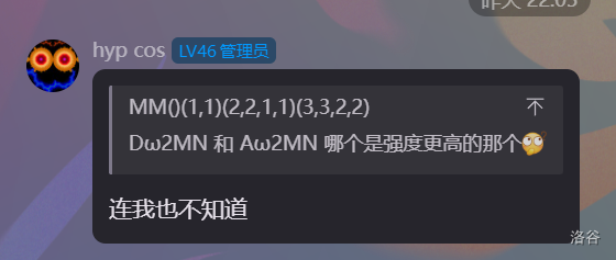 MM3 有一个叫做 \(3322\) 提升的东西,它指的是 MM3 在 \(MM()(1,1)(2,2,1,1)(3,3,2,2)\) 处的提升,这个提升也是我的现 QQ 名,在这里 MMS 的强度大幅增强,大概率使得 MPSO>MHO,但是现在这方面的分析不足。